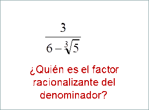 racionalizar debemos conseguir un factor racionalizante, aquel que si lo multiplicamos por