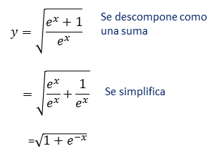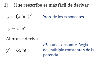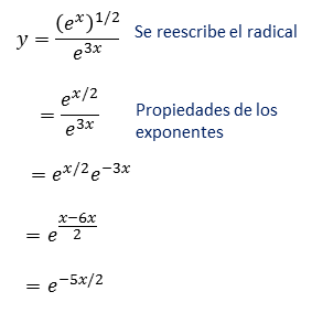 Podemos reescribir antes de derivar, para expresar la función en términos de la exponencial con