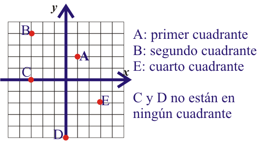 Ejercicios para después del video 1) Grafique cada punto. Diga en qué cuadrante está cada punto. A (1,2); B(-3,4); C(-3,0); D (0,-5); E (3,-2)
