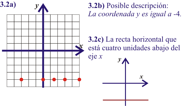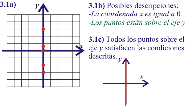 Ejercicios para después del video 3) a) Ubique los puntos dados. b) ¿Puede describir alguna característica en común que tengan estos puntos? c) Encuentre todos los puntos con la característica descrita.