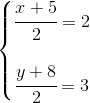 Del hecho que (2,3) es el punto medio del segmento de recta que une (x,y) con (5,8), tenemos
