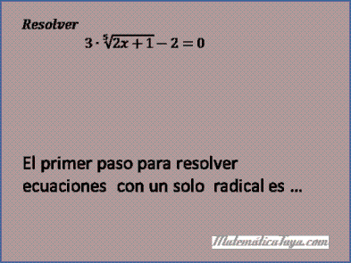 Se muestra un ejemplo en que se resuelve una ecuacion con un solo término con radical en la variable