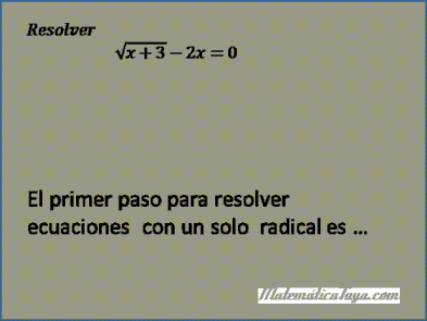 Si hay un solo término con radical se recomienda los siguientes pasos para resolver la ecuación.
